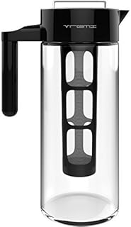 Cold Brew Iced Coffee Maker and Tea Infuser - 32 Ounce 1 Quart Glass Carafe Pitcher Airtight Lid and Spout - BPA Free Reusable Mesh Filter for Ground Coffee Loose Tea - Dishwasher Safe - Black