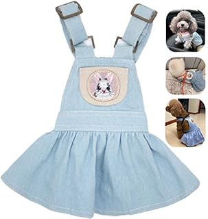 ペット服 ワンピース デニム 猫服 犬用ストラップ オーバー ドレス ドレス ワンピース Tシャツ可愛いドッグウェア ペット 着脱簡単 コットンブレンド リボン付き 春 夏 秋 ホワイト (L)