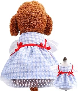 ペット服 犬服 ワンピース 洋服 チェック柄 可愛い ワンピース ドッグウェア スカートワンピース 猫用 通気性 蝶結び レース お姫様 春夏 ワンちゃん 小中型犬 散歩着 室内 記念撮影 おしゃれ お出かけ(M)