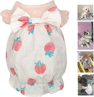 ペット服 ワンピース 猫服 犬用洋服 イチゴドレス ワンピース Tシャツ可愛いドッグウェア ペット 着脱簡単 コットンブレンド 付き 春 夏 秋 ホワイト (L)