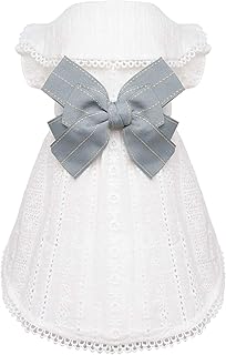 ペット服 ワンピース 猫服 犬用洋服 ドレス ワンピース Tシャツ可愛いドッグウェア ペット 着脱簡単 コットンブレンド リボン付き 春 夏 秋 ホワイト (XSP)