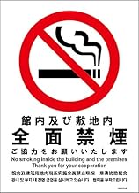 標識スクエア 「 館内及び敷地内 全面禁煙 」 タテ・大【 プレート 看板 】 200x276㎜ CTK1109 2枚組