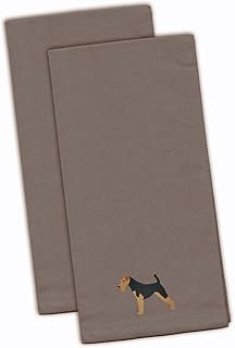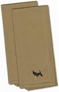 Caroline's Treasures BB3457TNTWE エアデールテリアタン刺繍キッチンタオル (2枚セット) 28インチ x 19インチ マルチカラー