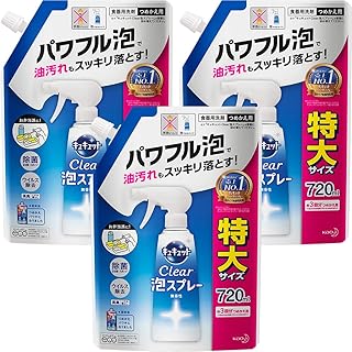 【まとめ買い】キュキュット クリア泡スプレー 食器用洗剤 無香性 詰め替え 720ml×3個