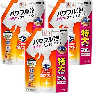 【まとめ買い】キュキュット クリア泡スプレー 食器用洗剤 オレンジの香り 詰め替え 720ml×3個