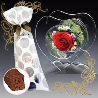 花とスイーツのセット プリザーブドフラワー(ハート型)&熟成ケーキ(ギフトセット 誕生日 記念日 母の日 プレゼント ブリザードフラワー)