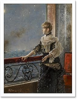 Alfred Stevens Moonlight Au Clair De La Lune Painting Art Print Framed Poster Wall Decor 12x16 inch 月ペインティングポスター壁デコ