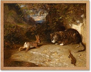 Alexandre Gabriel Decamps Cat Weasel Rabbit 1836 Painting Art Print Framed Poster Wall Decor 12x16 inch ペインティングポスター壁デコ
