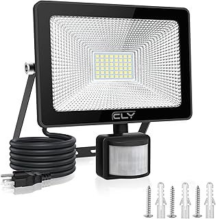 CLY センサーライト 屋外 人感センサーライト LED投光器 60W 昼白色 6000LM 6500K フラッドライト 超高輝度 IP66防水 省エネ 明るい 屋外 屋内 設置可能 高感度PIRセンサー 防犯対策用 駐車場/倉庫/防犯灯/作業灯/玄関灯/廊下/勝手口 コード1.5m 日本語説明書付き 二年間保証【PSE認証済 AC100V接地3Pプラグ】