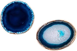 Xigeapg 2個瑪瑙スライスブルー瑪瑙コースター茶碗トレイ装飾デザインストーンコースターゴールドエッジ家の装飾宝石コースター