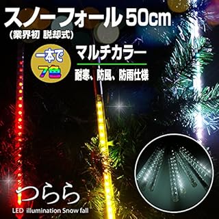 電光ホーム LED イルミネーション スノーフォール つらら ライト [ 流れる 両面発光 フラッシュ / 50cm × 10本 ] 屋外 防水 防雨 ガーデン DIY (マルチカラー 7色)