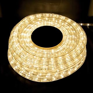 クリスマス イルミネーション 2芯 丸型 防滴 ロープ ライト 1500 LED / 50m シャンパン ゴールド 28種類 コントローラー セット