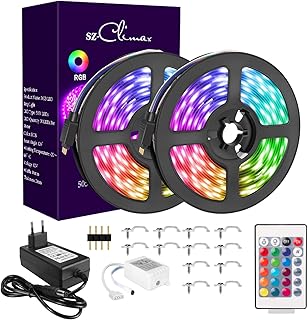 SZ-Climax LEDテープライト RGB 10m [5m x 2pcs] 間接照明 照明テープ ライトテープ イルミネーション ライト 防水 調光 調色 リモコン操作 マルチカラー LED 看板照明 棚下照明