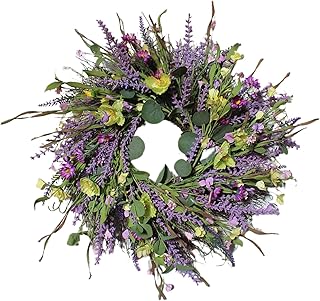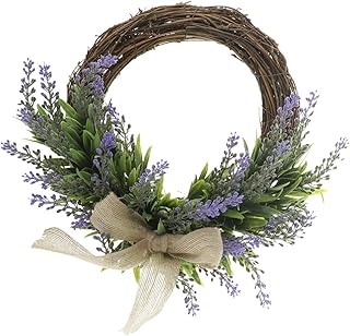 Fenteer 人工ラベンダー花輪の花の花輪フロントドア農家歓迎ドアの花輪夏ぶら下げ壁結婚式のウィンドウ装飾