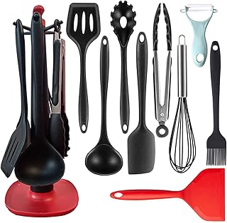 キッチンツール 調理器具10件セット シリコンブラケット 便利な収納 玉子焼きシャベル 料理 台所用品 食品安全認証済み 耐熱 (黒)