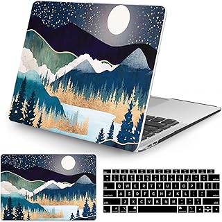 Watbro MacBook Air 13インチノートパソコンケース 2020 2019 2018年発売 A2337 M1/A2179/A1932 抽象的な山と月の風景ケース キーボードカバー付き Touch ID付き